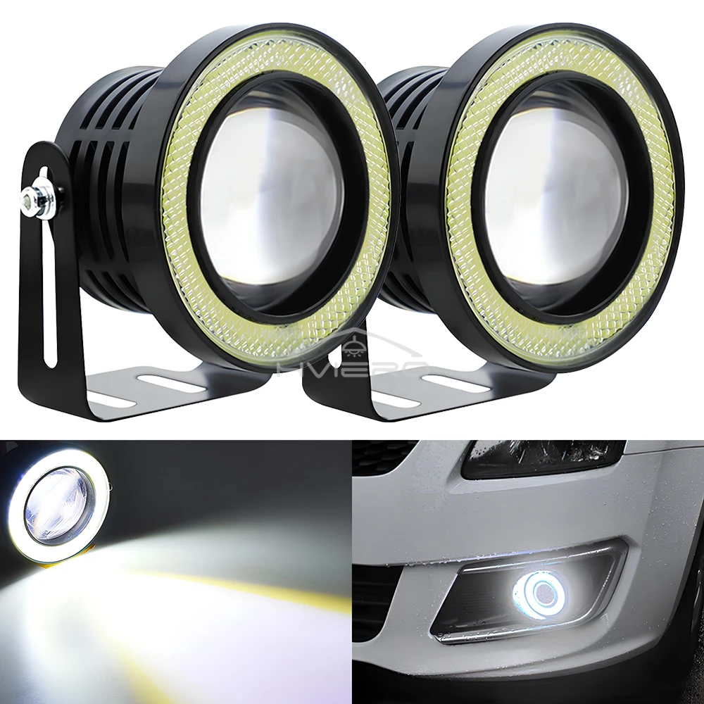 2X Car COB Auto DRL Led 12V HeadLamps Angel Eyes Fog Waterproof Headlights DRL Daytime Running DayLight Turn Signal Trunk Led